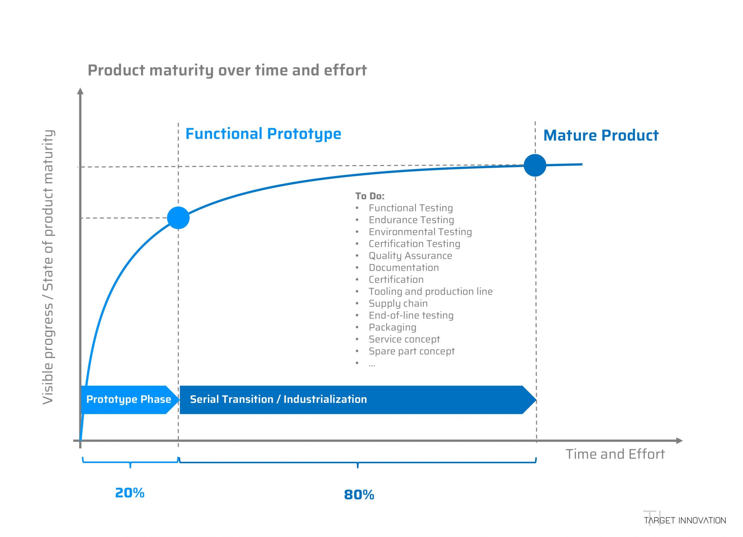 Especially navigating the transition from a working prototype to a mass manufacturing mature product is a challenging yet crucial phase for startups. It requires adapting the product for mass production, meeting cost and timeline expectations, ensuring quality at scale, and maintaining investor confidence. Target Innovation Consulting offers expert guidance to help you navigate this phase.